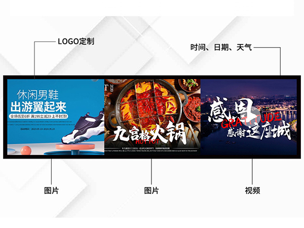 液晶廣告機(jī)和液晶條形屏在多個(gè)方面存在顯著的差異。以下是對(duì)兩者的詳細(xì)對(duì)比:一、設(shè)計(jì)與定制化程度液晶廣告機(jī):雖然也支持一定程度的定制化,但更多采用標(biāo)準(zhǔn)尺寸和設(shè)計(jì)。根據(jù)不同環(huán)境和需求,有壁掛式、立式、嵌入式